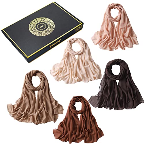 NOOR Premium Chiffon Hijab Set - 5 Color Hijab Scarf Pack for Women, Non-Slip, Long Rectangle, Head Scarf Wrap (Mix Colors 5)